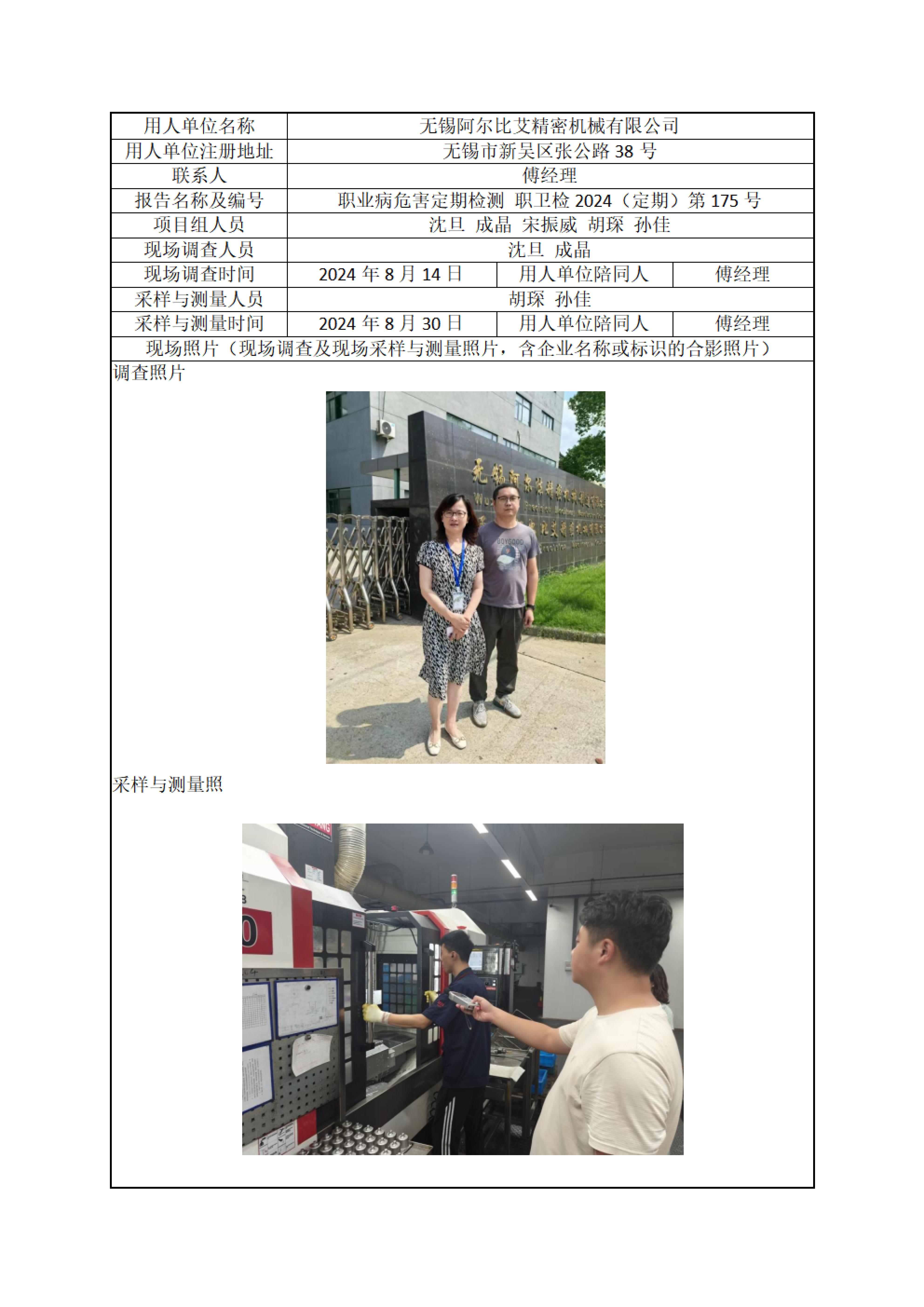 【职业卫生报告】无锡阿尔比艾精密机械有限公司