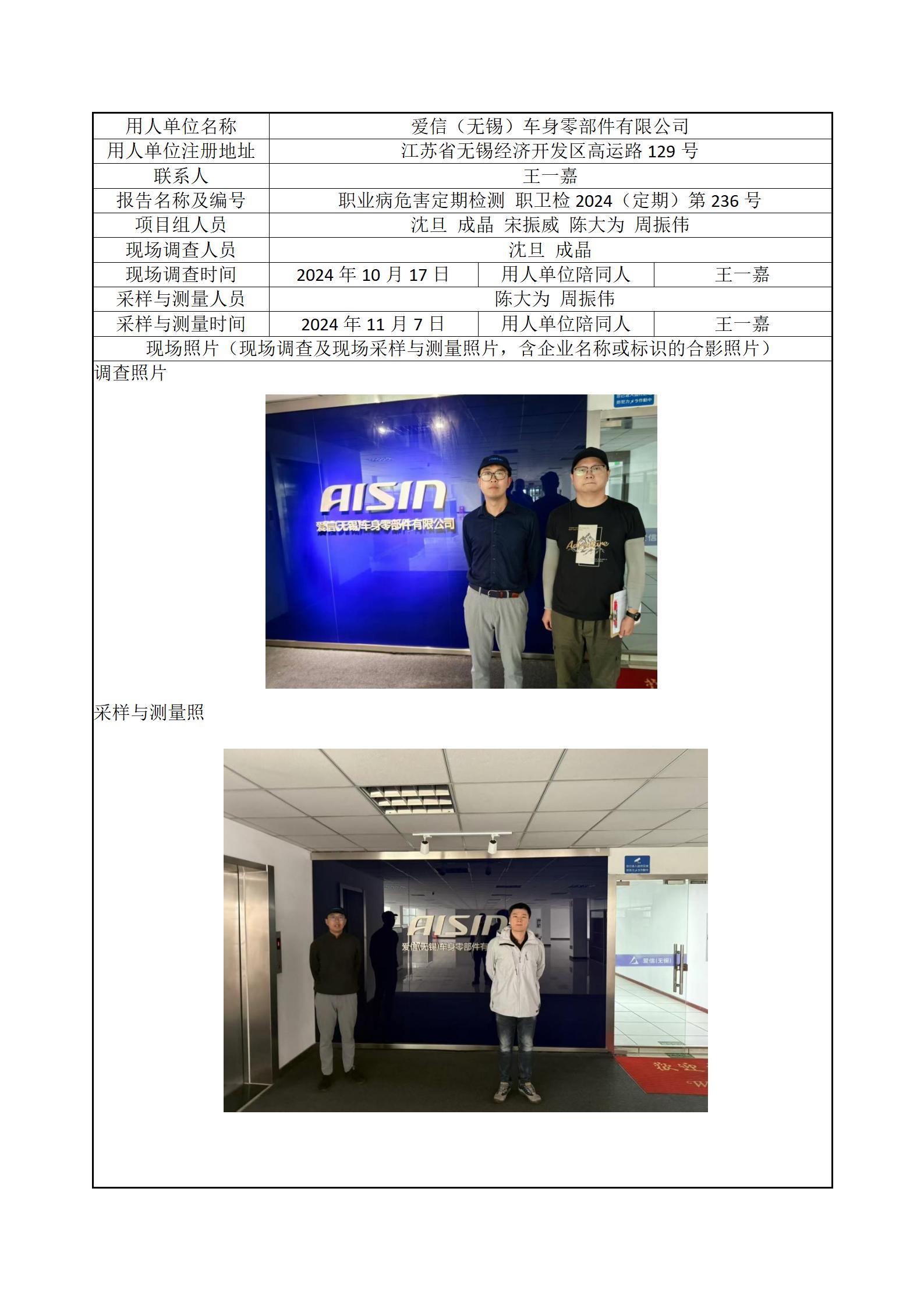 现场采样每日上报(爱信(无锡)车身零部件有限公司)