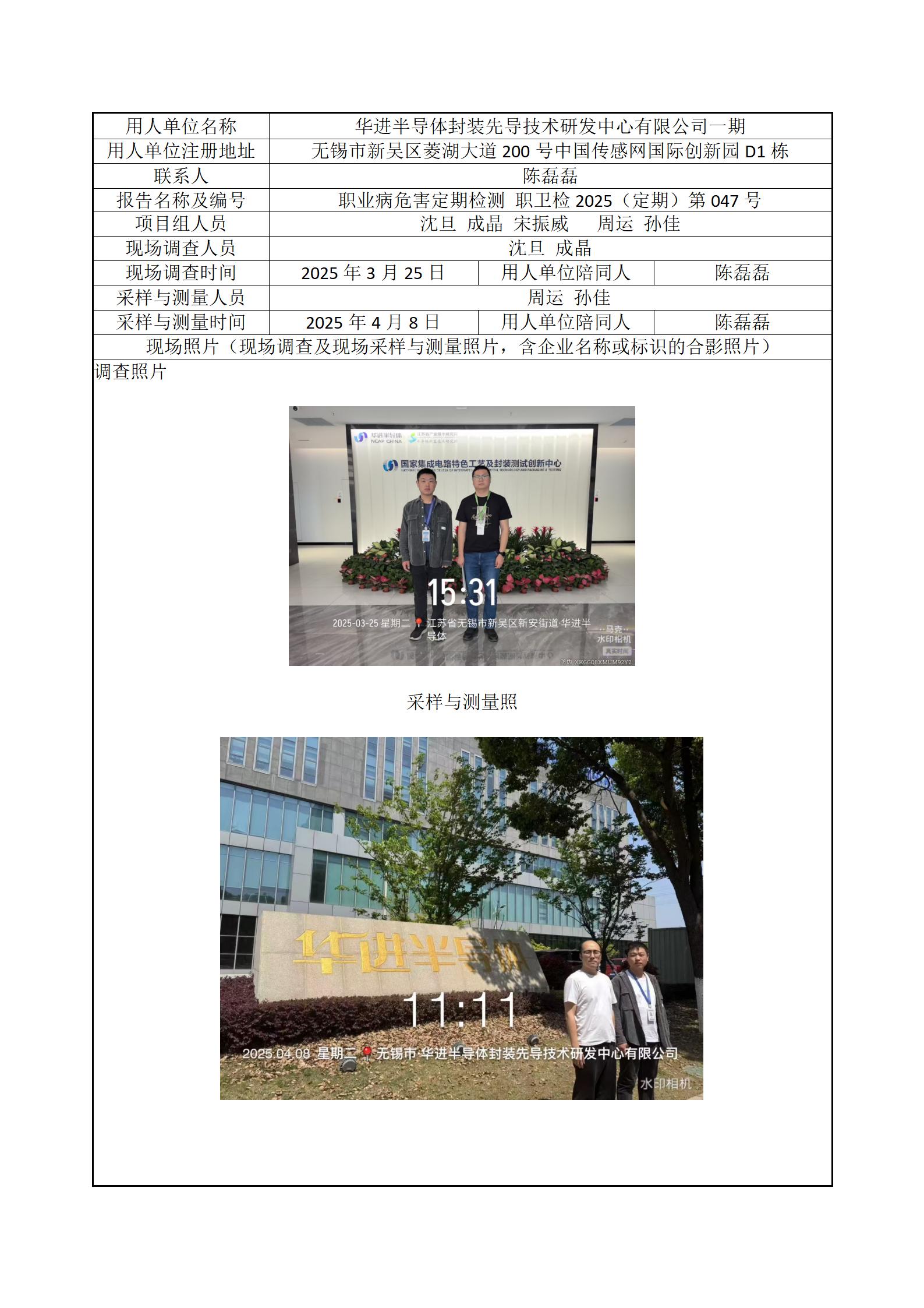 现场采样每日上报(华进半导体封装先导技术研发中心有限公司一期)