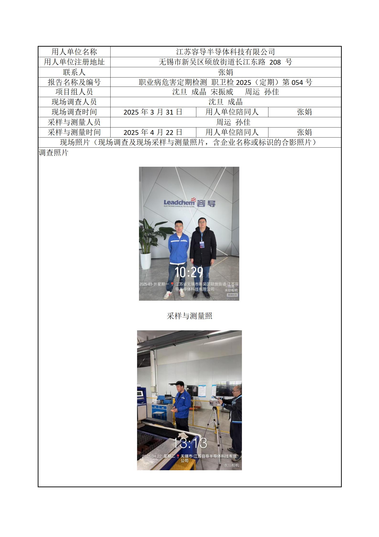 现场采样每日上报(江苏容导半导体科技有限公司)