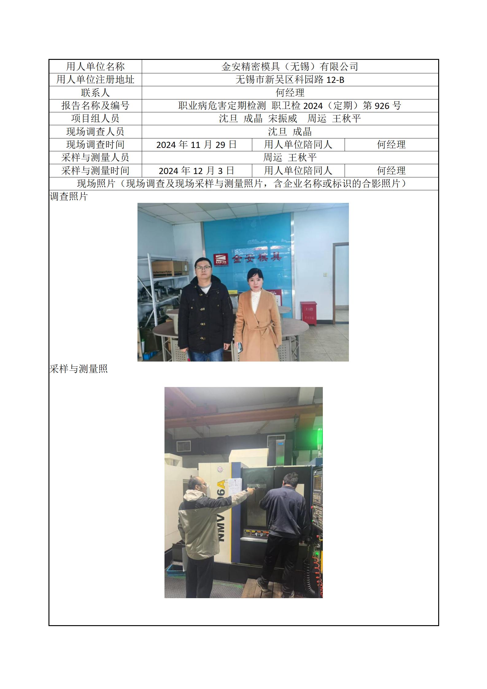 现场采样每日上报(金安精密模具(无锡)有限公司)