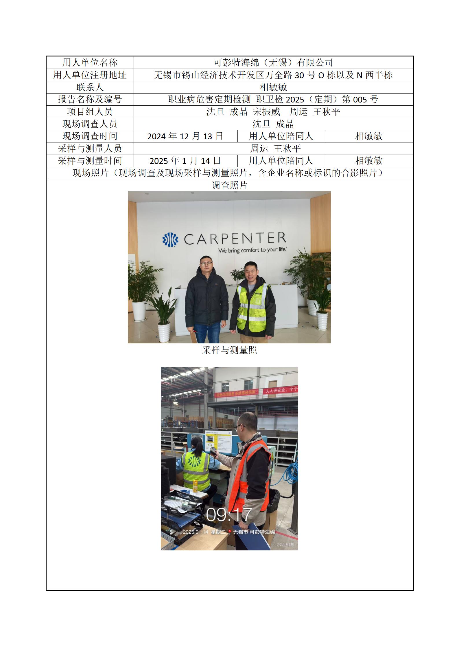 现场采样每日上报(可彭特海绵(无锡)有限公司)