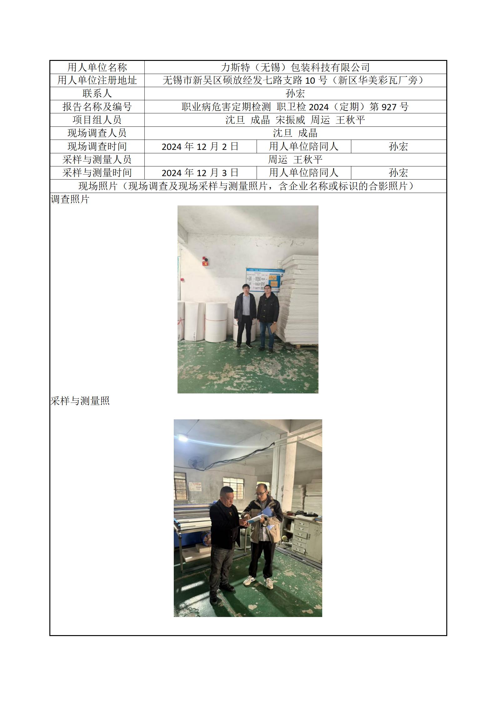 现场采样每日上报(力斯特(无锡)包装科技有限公司)