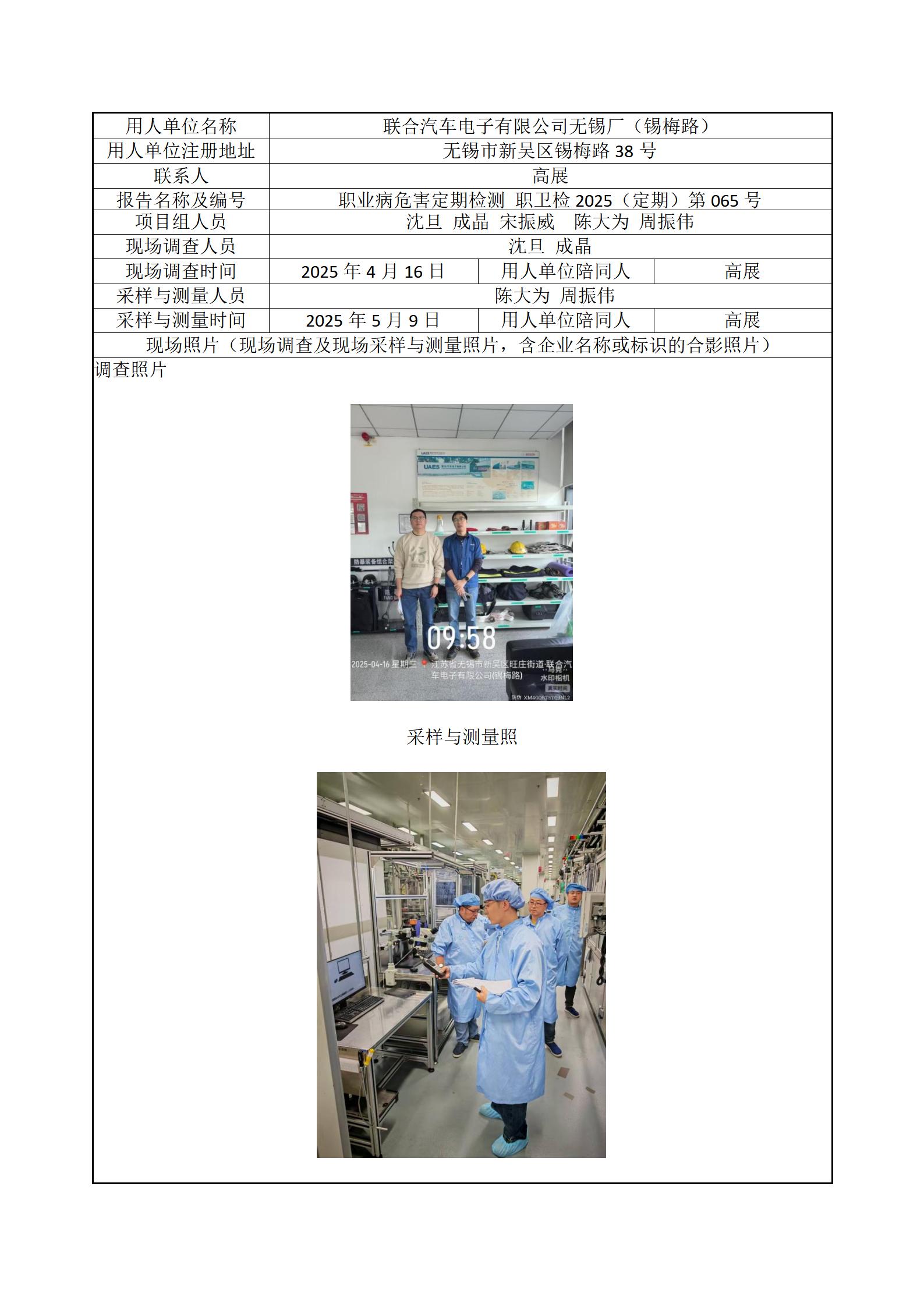 现场采样每日上报(联合汽车电子有限公司无锡厂(锡梅路))