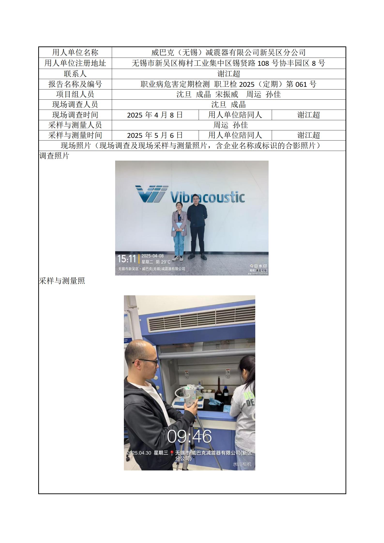 现场采样每日上报(威巴克(无锡)减震器有限公司新吴区分公司)