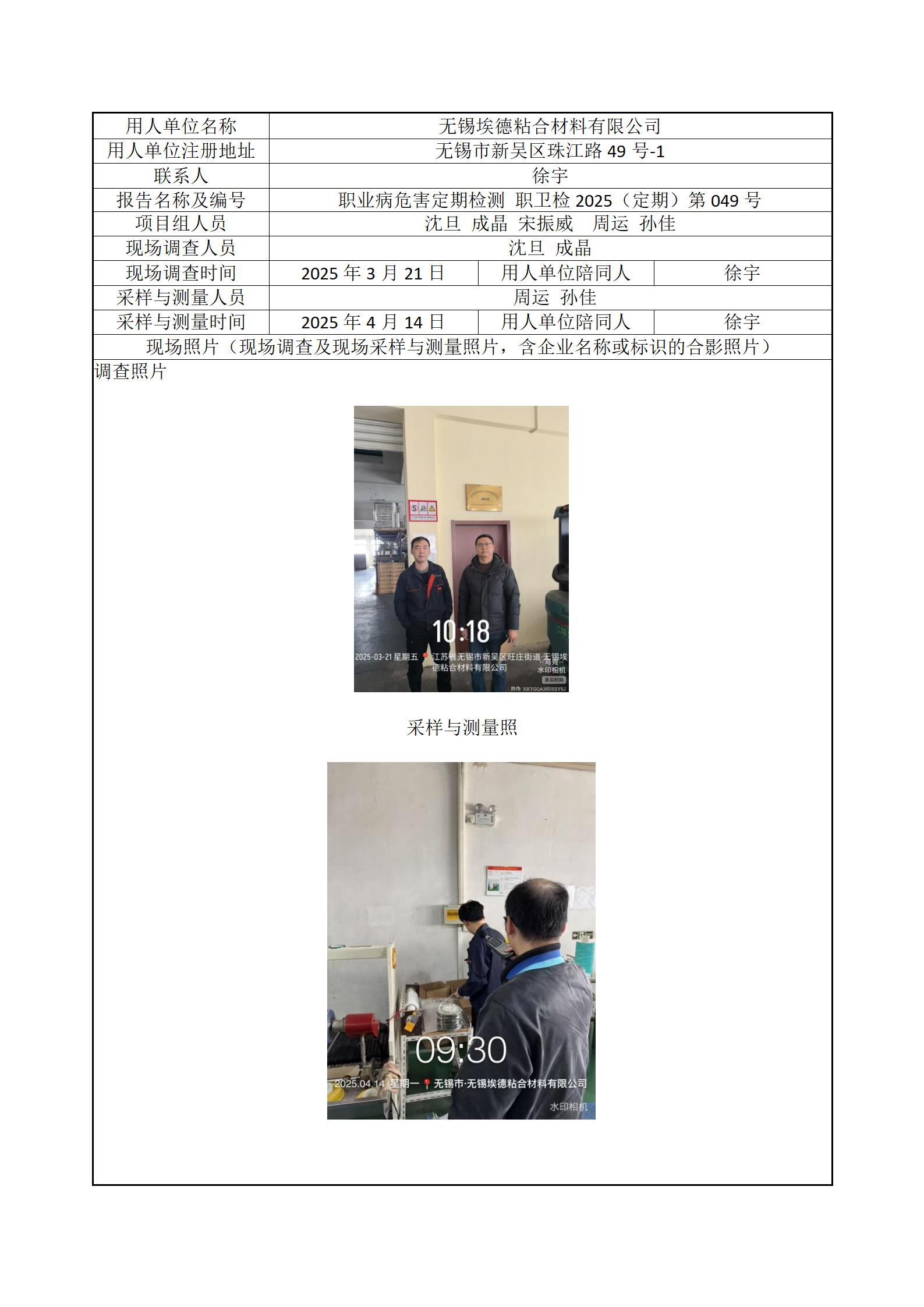 现场采样每日上报(无锡埃德粘合材料有限公司)