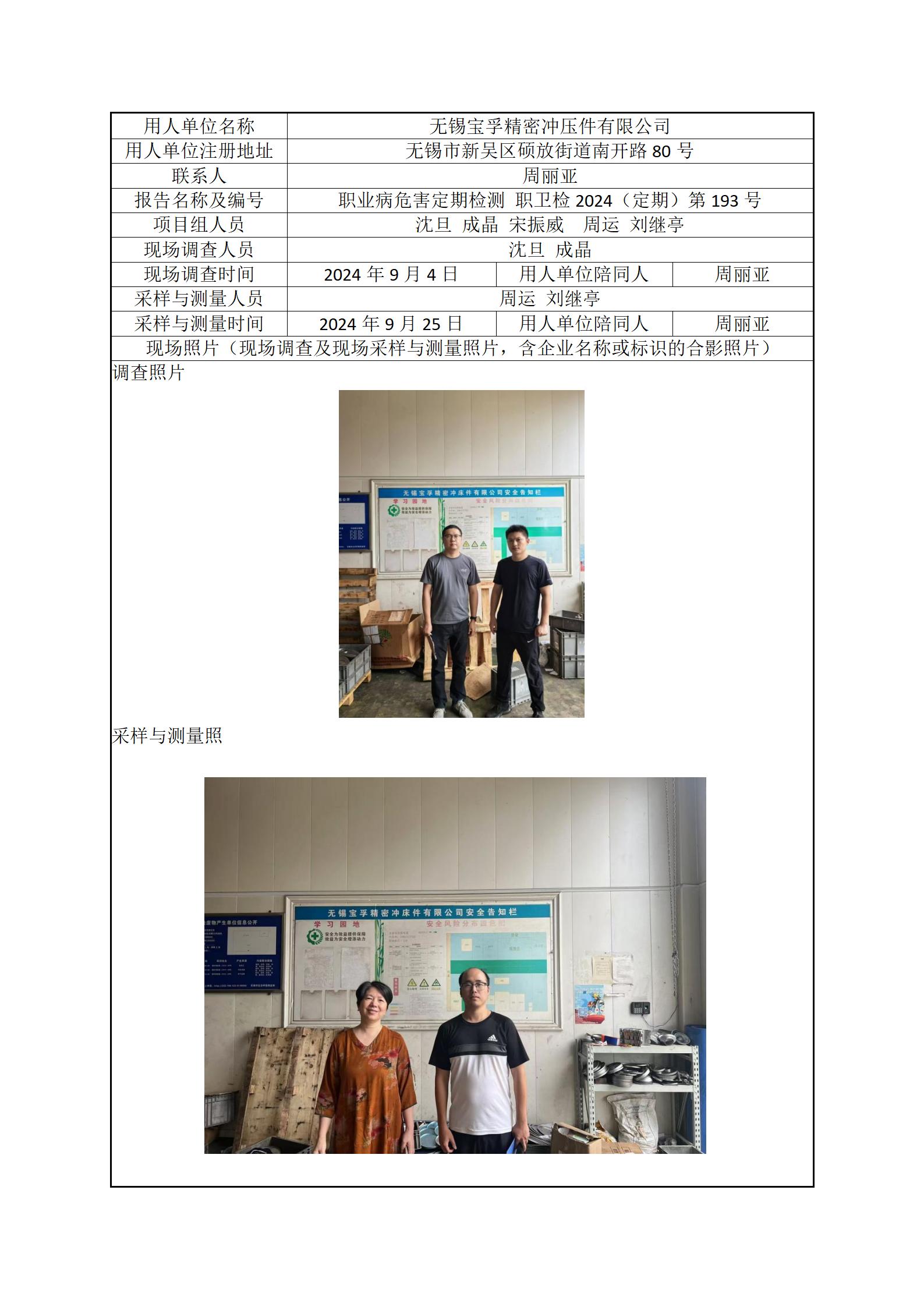 现场采样每日上报(无锡宝孚精密冲压件有限公司)