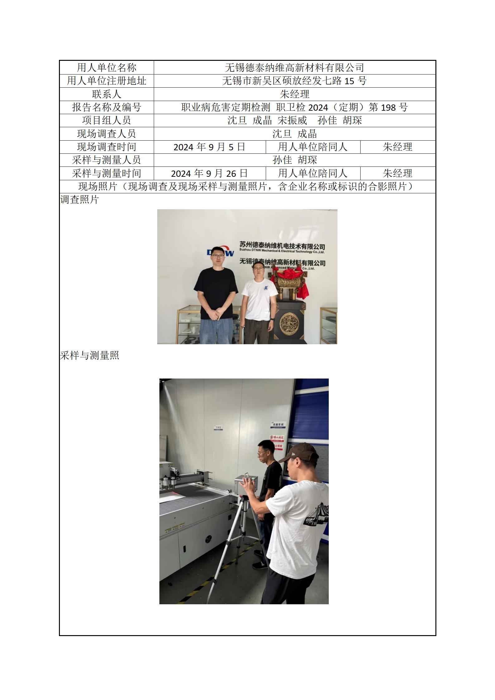 现场采样每日上报(无锡德泰纳维高新材料有限公司)