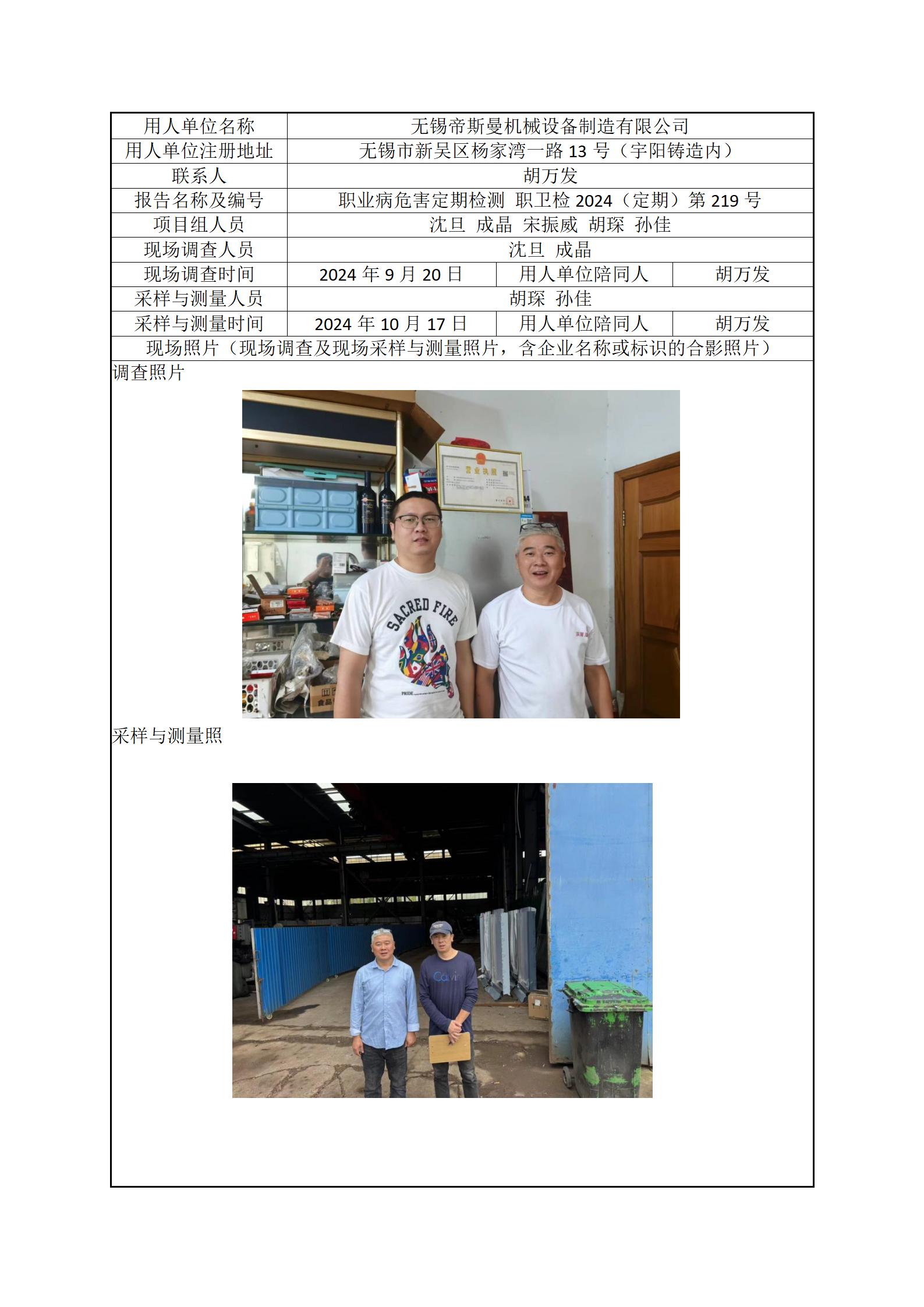 现场采样每日上报(无锡帝斯曼机械设备制造有限公司)