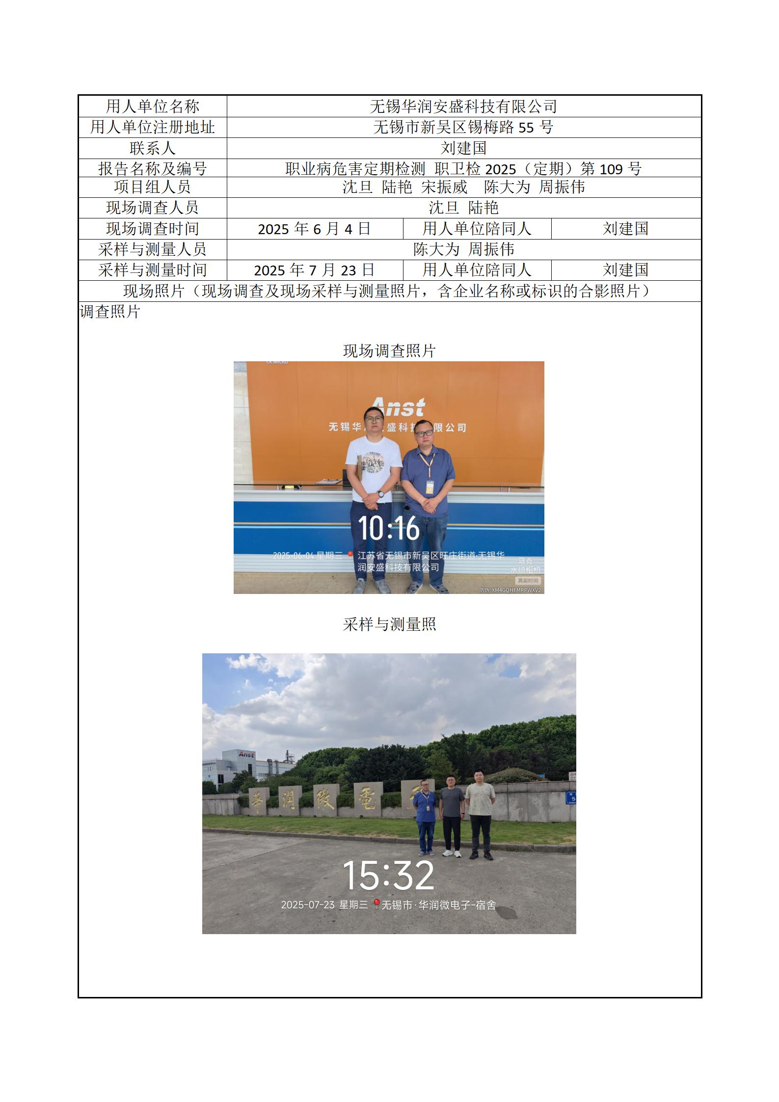 现场采样每日上报(无锡华润安盛科技有限公司)
