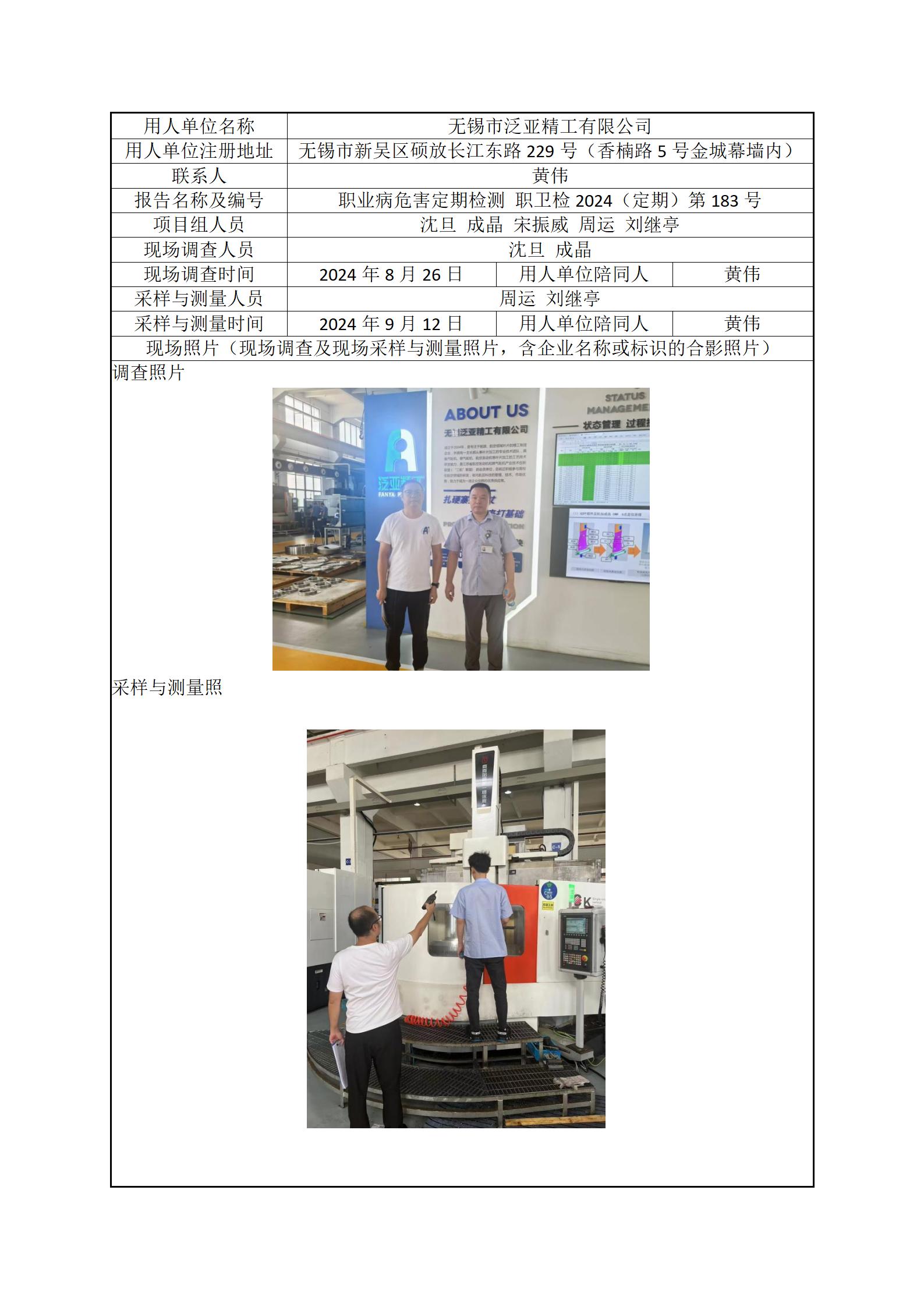 现场采样每日上报(无锡市泛亚精工有限公司)