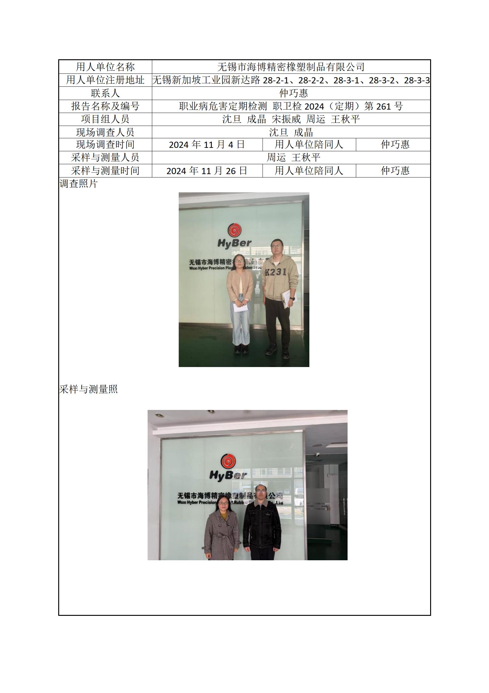 现场采样每日上报(无锡市海博精密橡塑制品有限公司)
