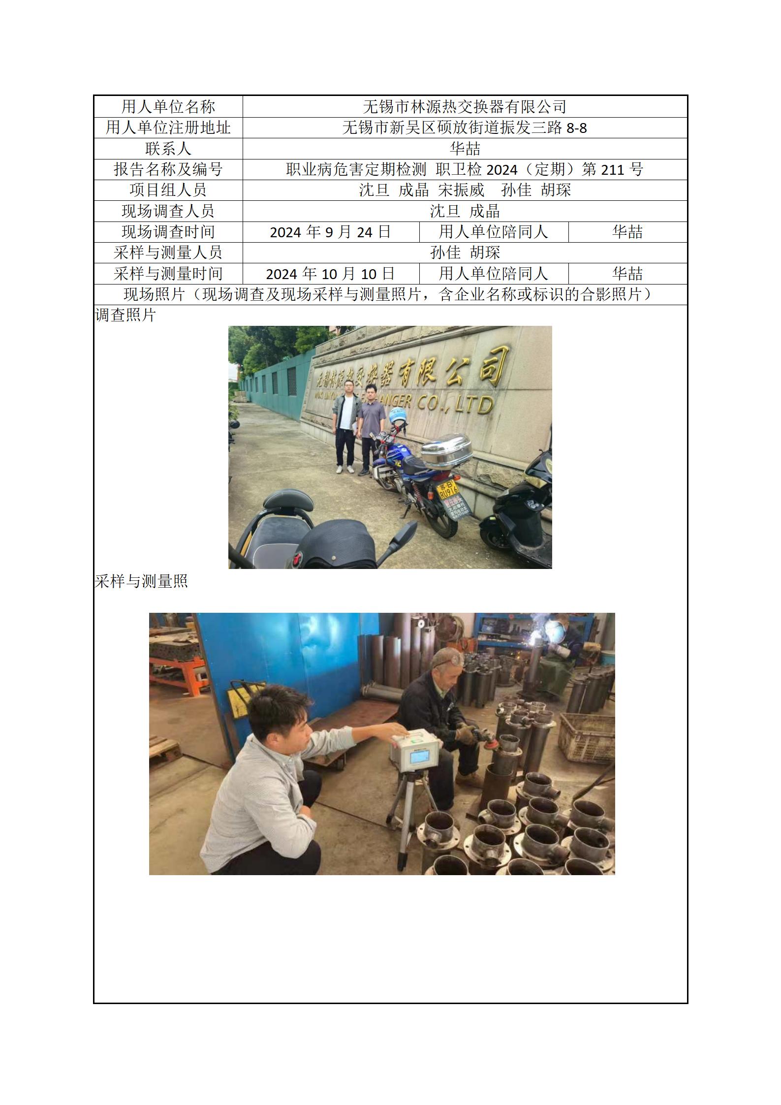 现场采样每日上报(无锡市林源热交换器有限公司)