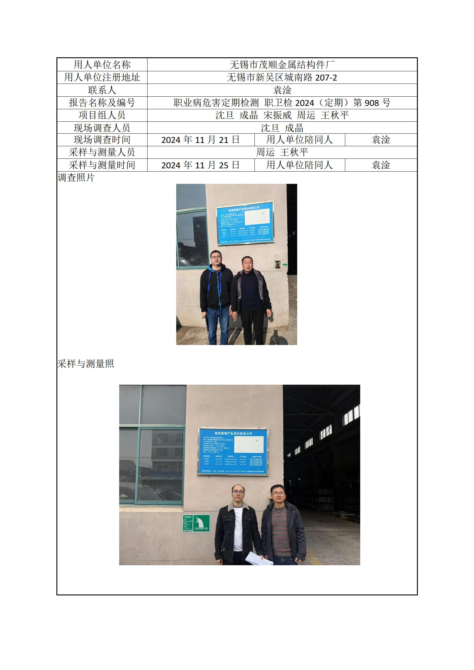 现场采样每日上报(无锡市茂顺金属结构件厂)