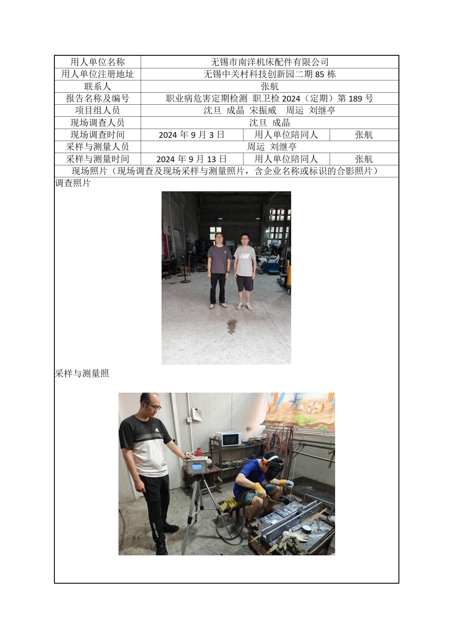 现场采样每日上报(无锡市南洋机床配件有限公司)
