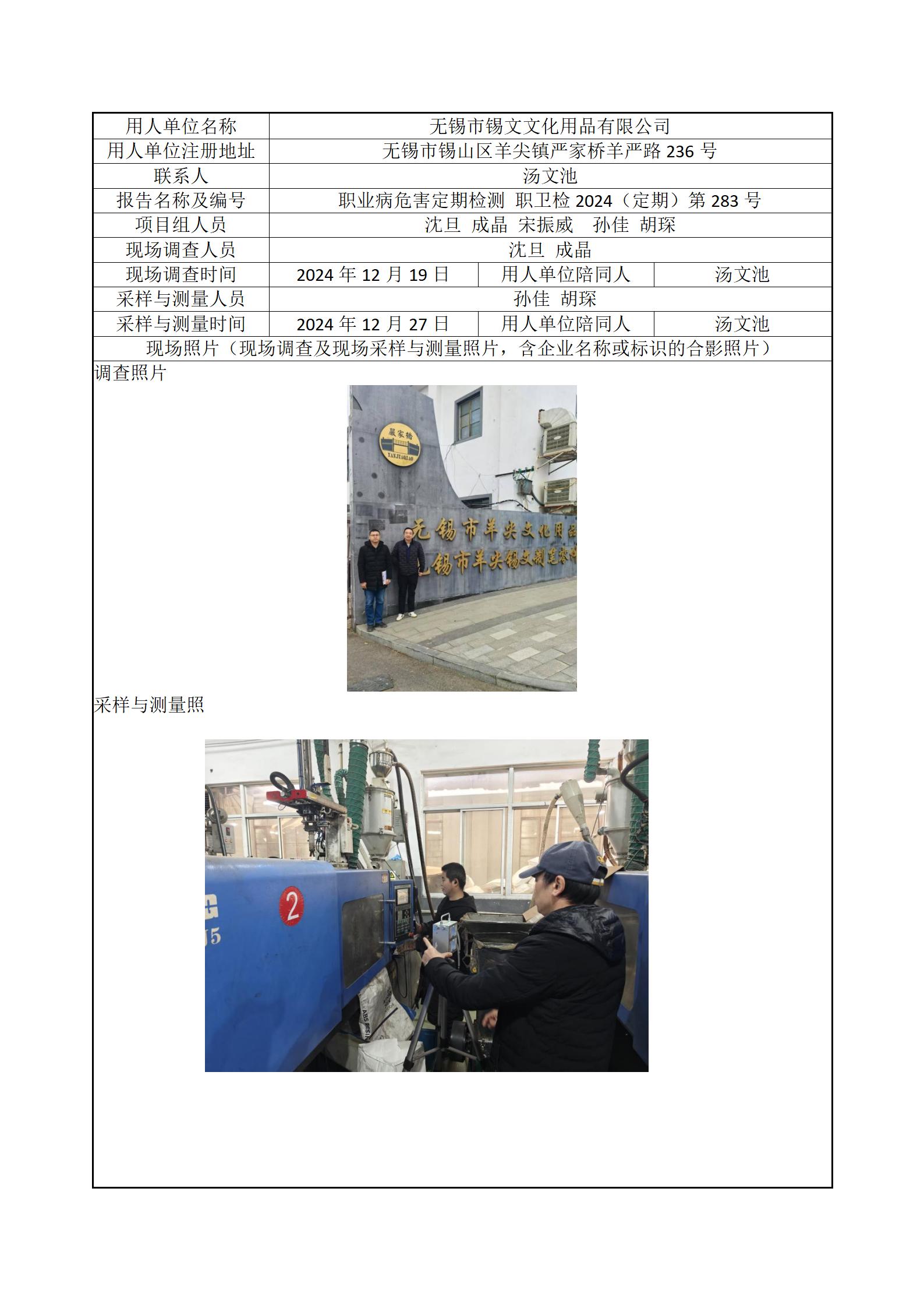 现场采样每日上报(无锡市锡文文化用品有限公司)