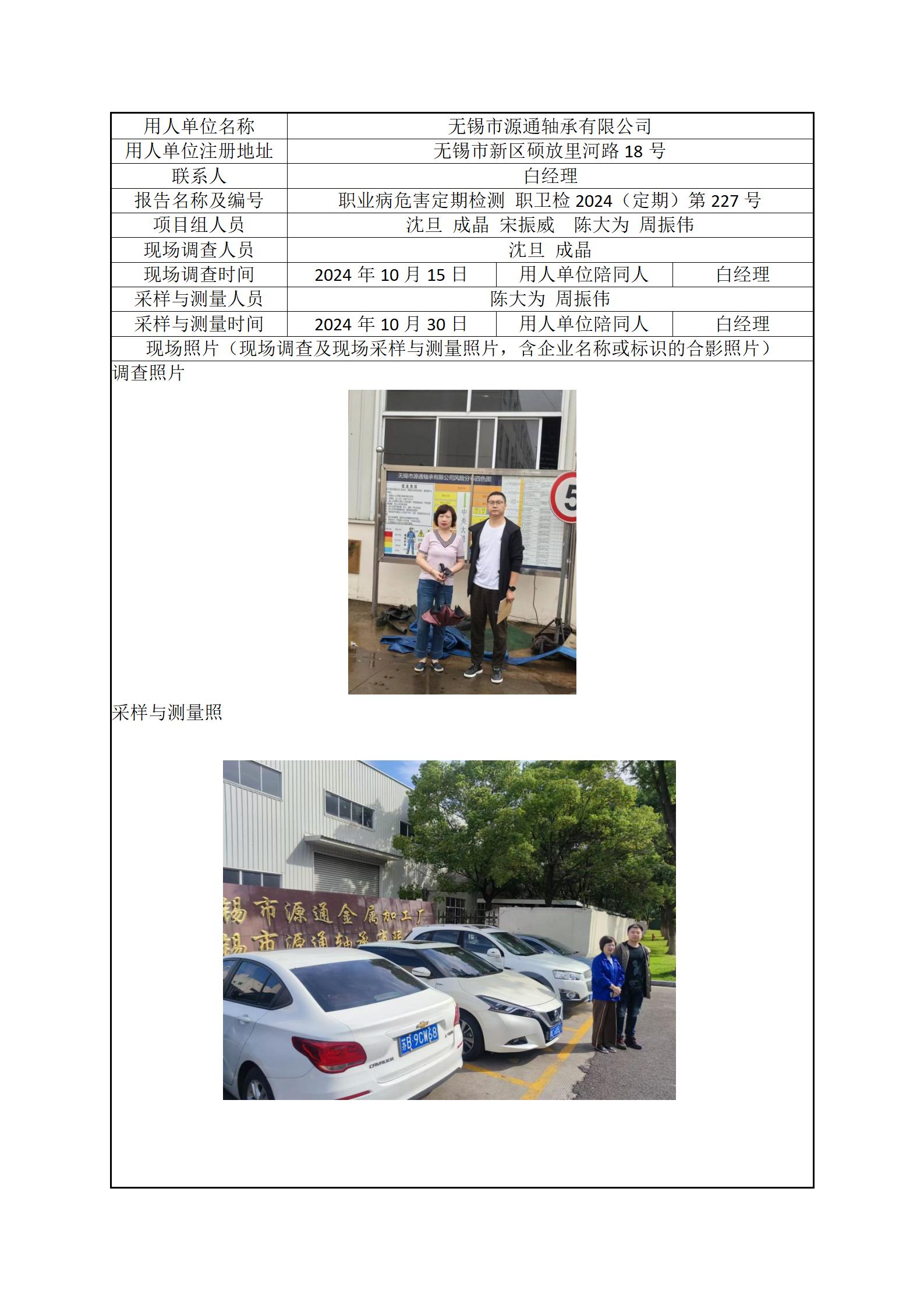 现场采样每日上报(无锡市源通轴承有限公司)