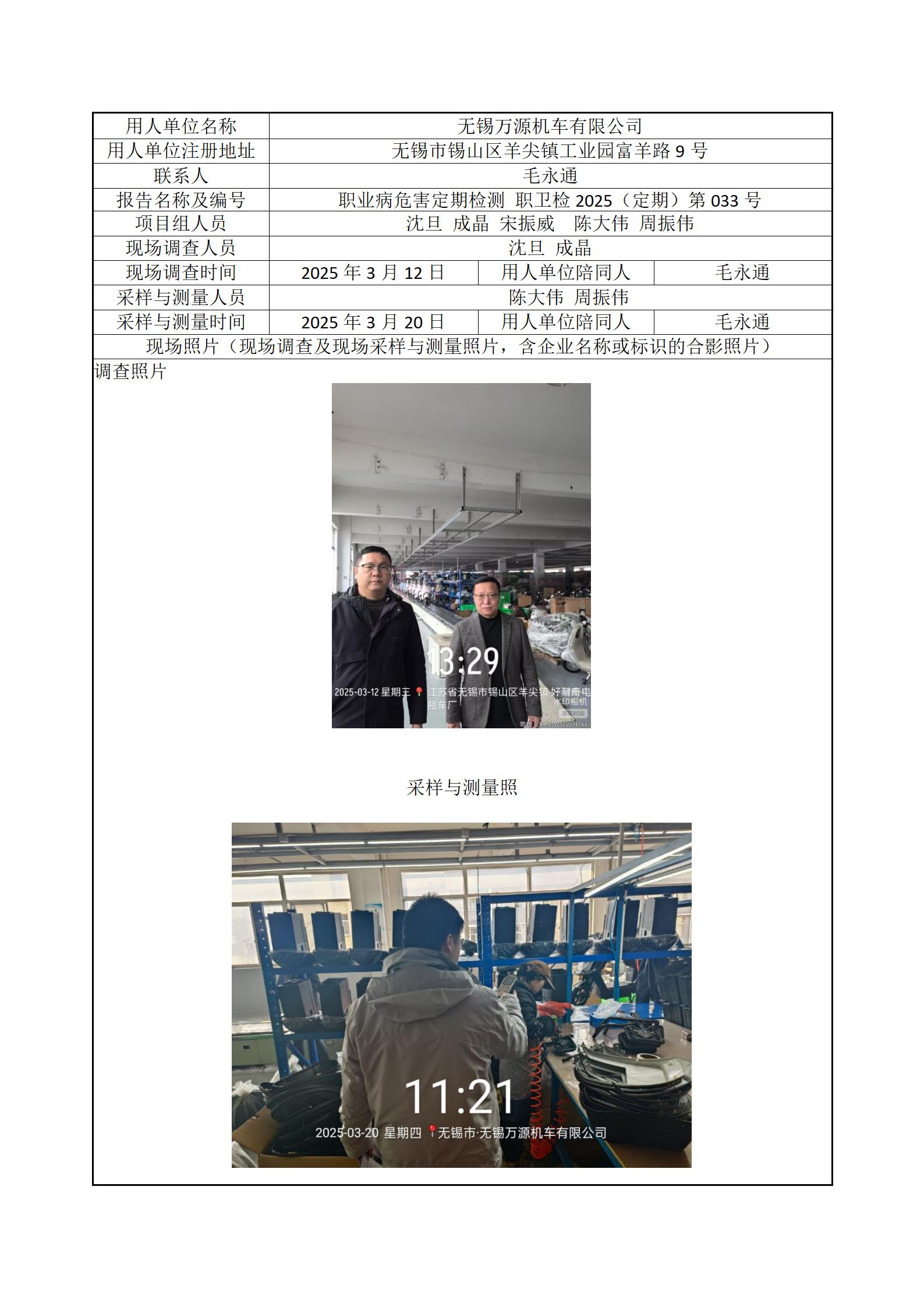 现场采样每日上报(无锡万源机车有限公司)