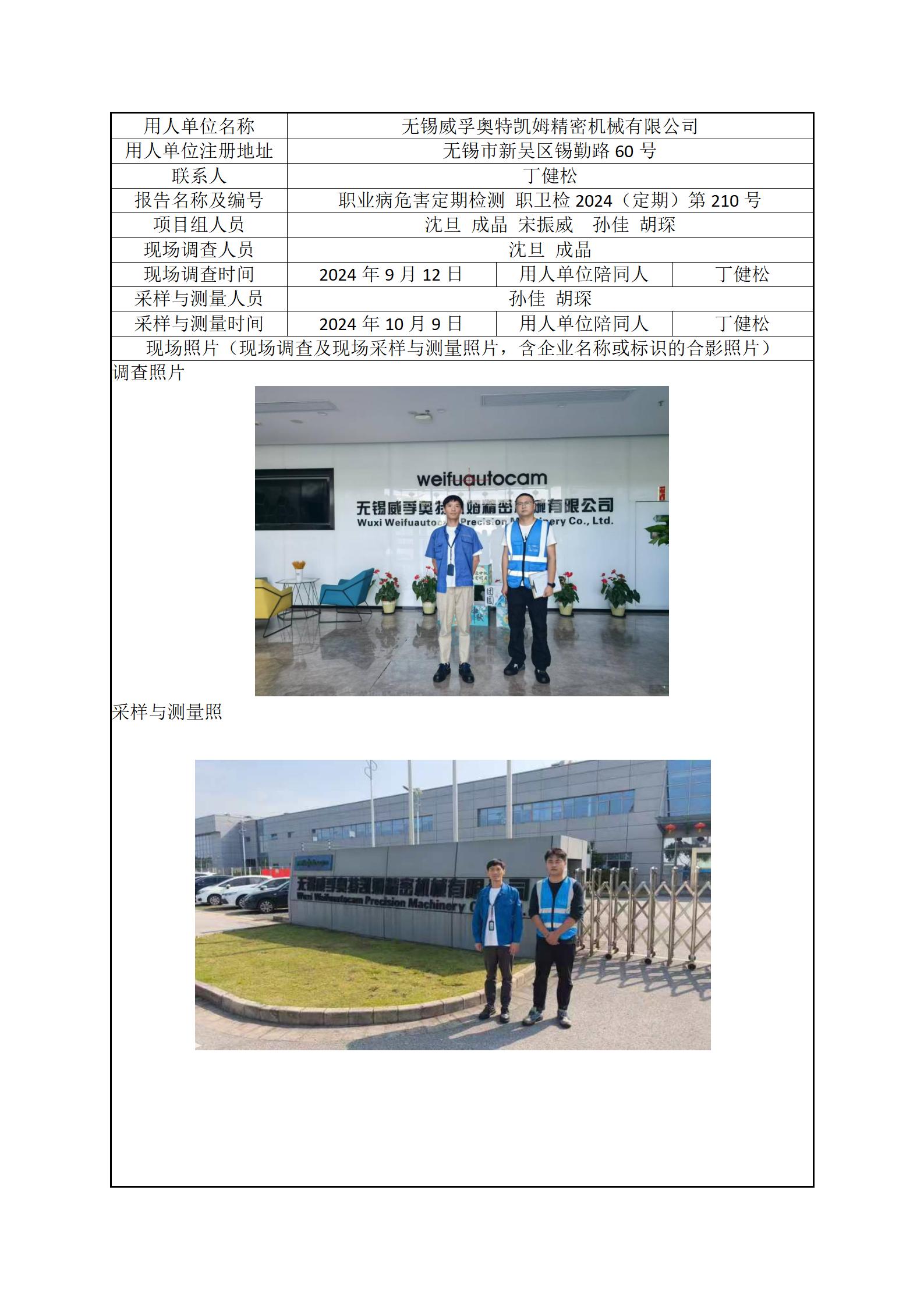 现场采样每日上报(无锡威孚奥特凯姆精密机械有限公司)