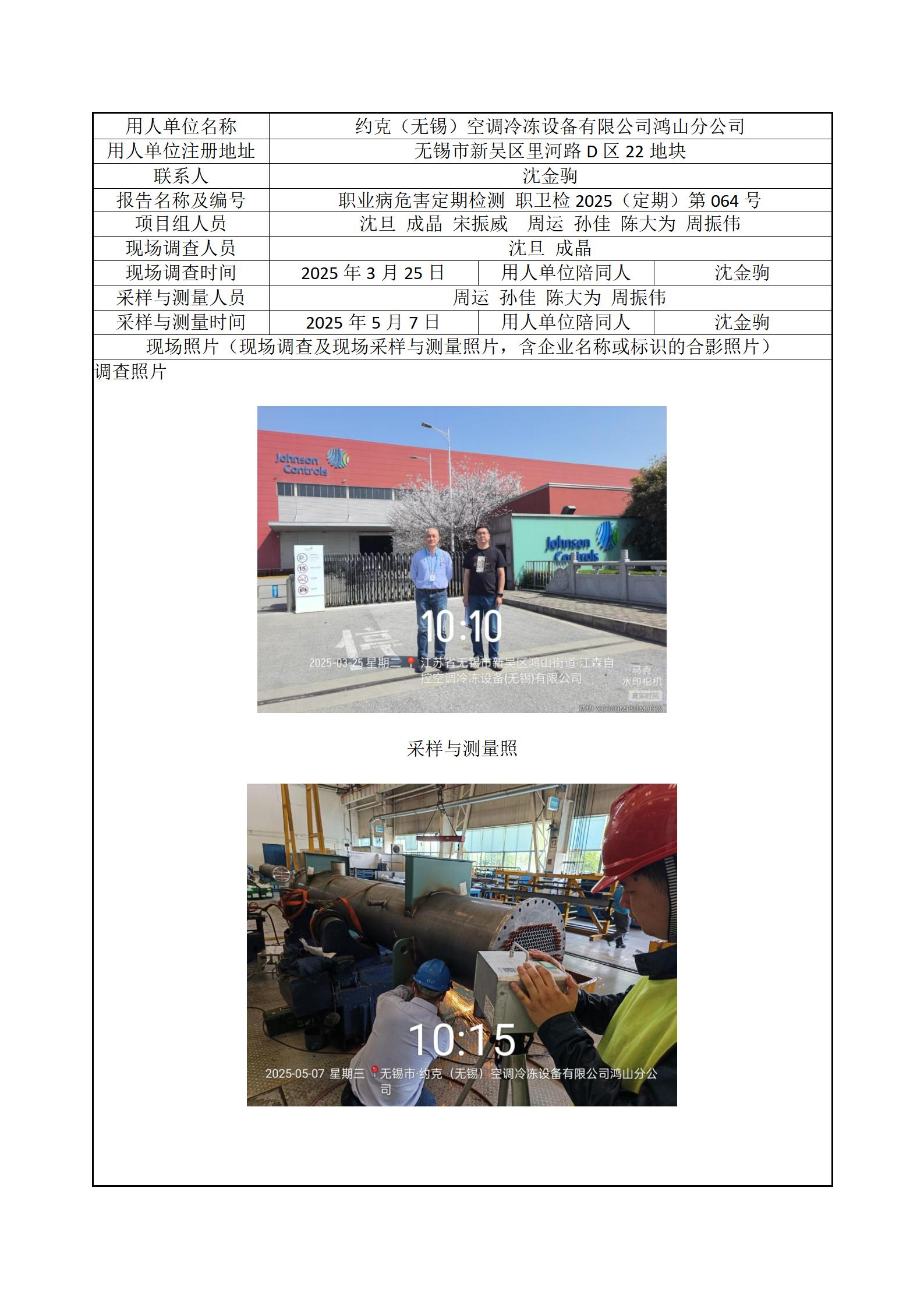 现场采样每日上报(约克(无锡)空调冷冻设备有限公司鸿山分公司)