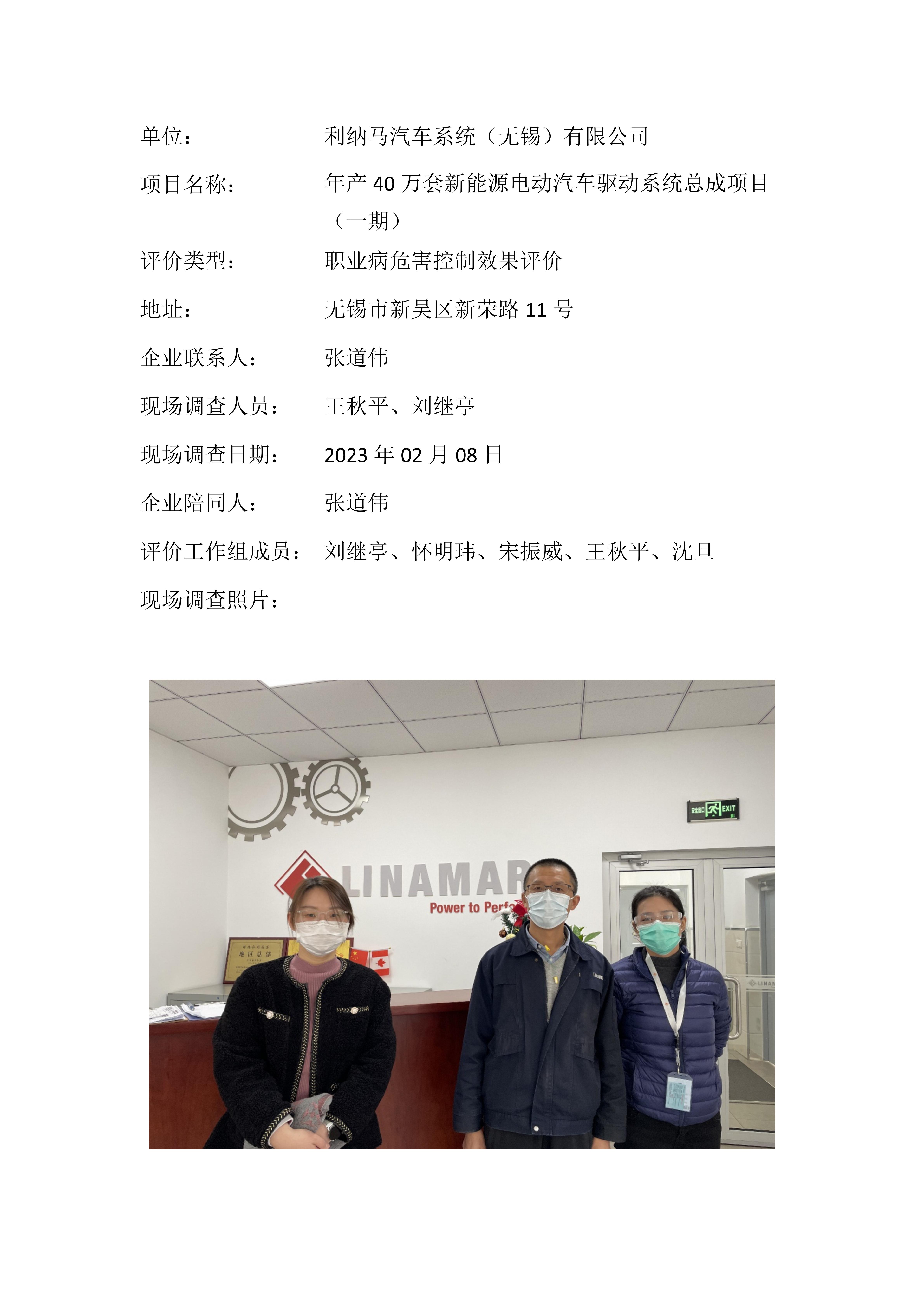 【职业病危害控制效果评价报告】利纳马汽车系统(无锡)有限公司