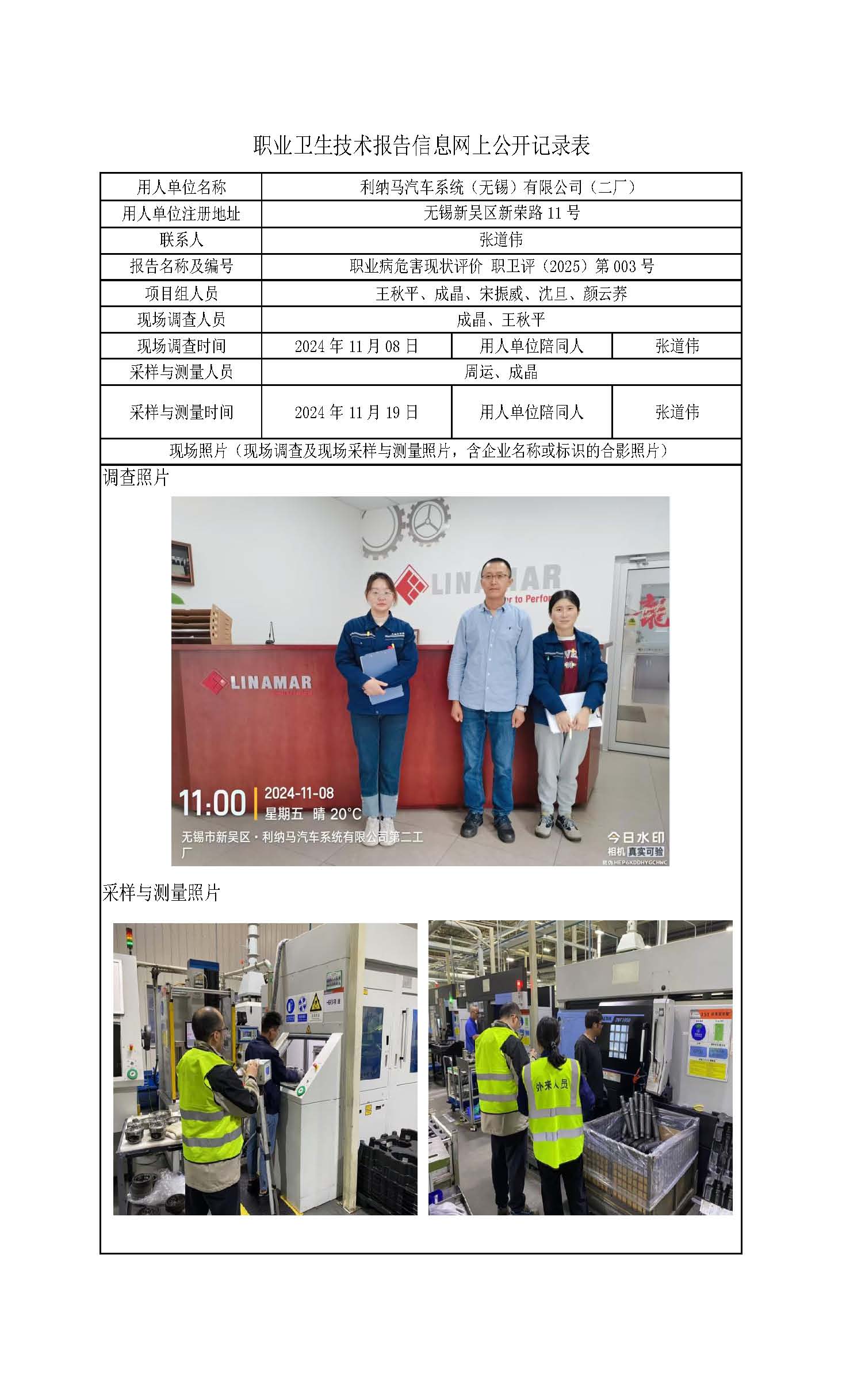 【职业病危害现状评价报告】利纳马汽车系统(无锡)有限公司(二厂)