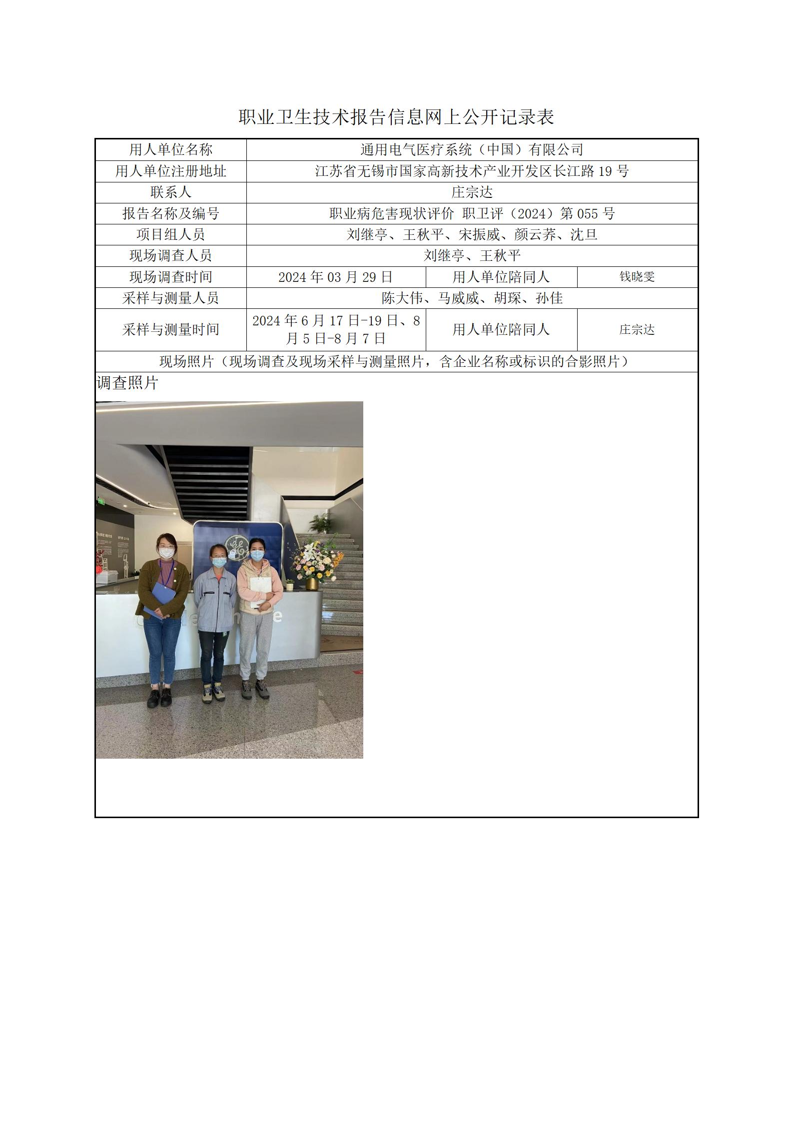 【职业病危害现状评价报告】通用电气医疗系统(中国)有限公司