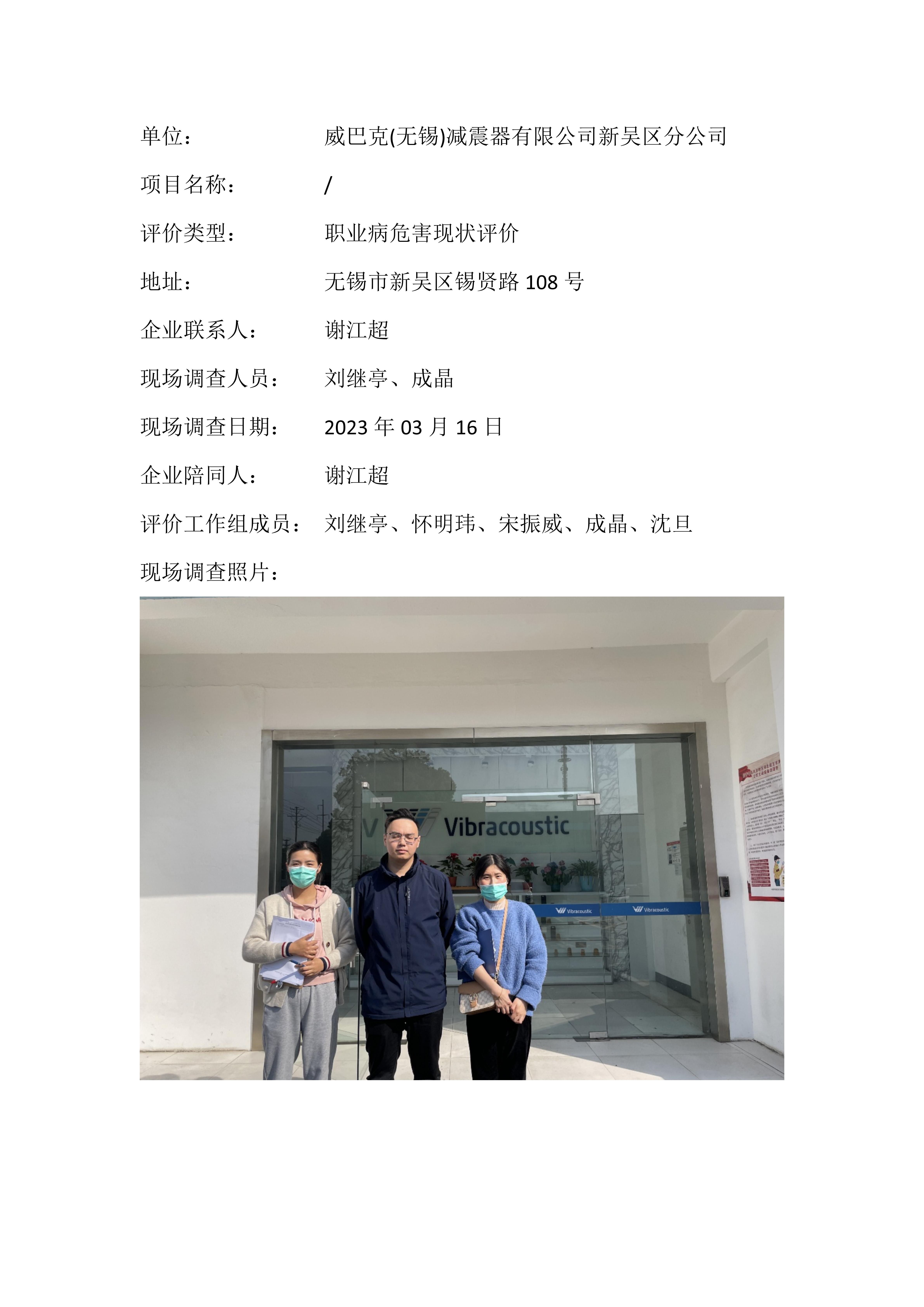 【职业病危害现状评价报告】威巴克减震器有限公司新吴区分公司