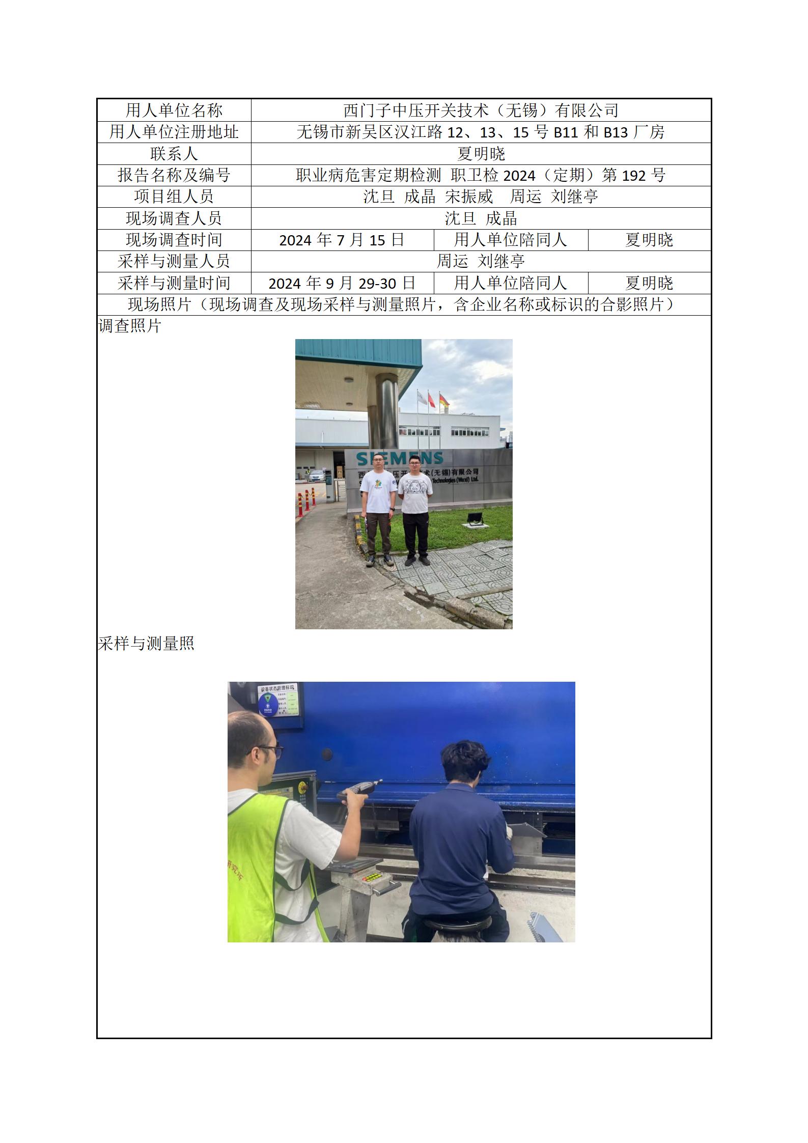 【职业病危害现状评价报告】西门子中压开关技术(无锡)有限公司