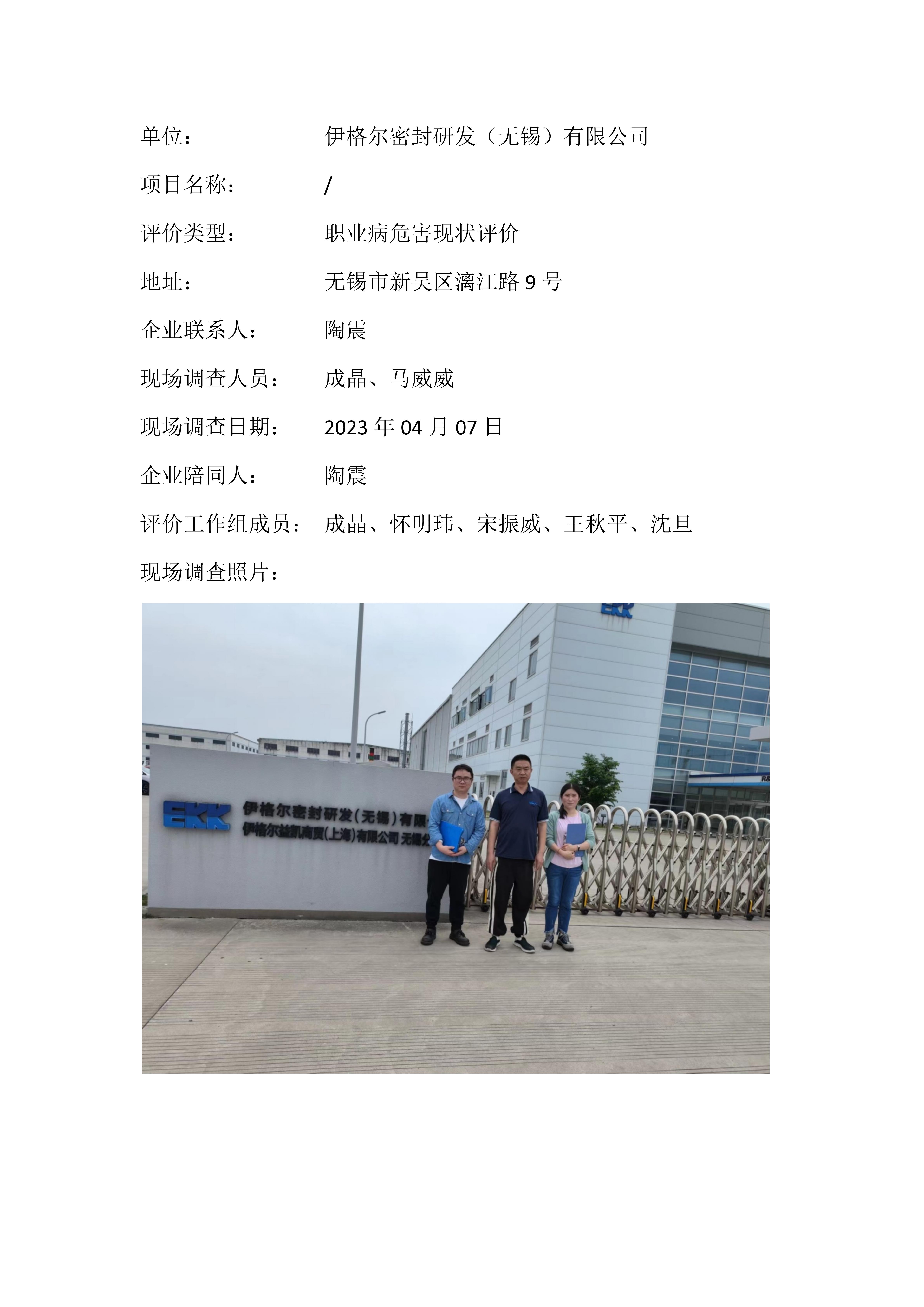【职业病危害现状评价报告】伊格尔密封研发(无锡)有限公司