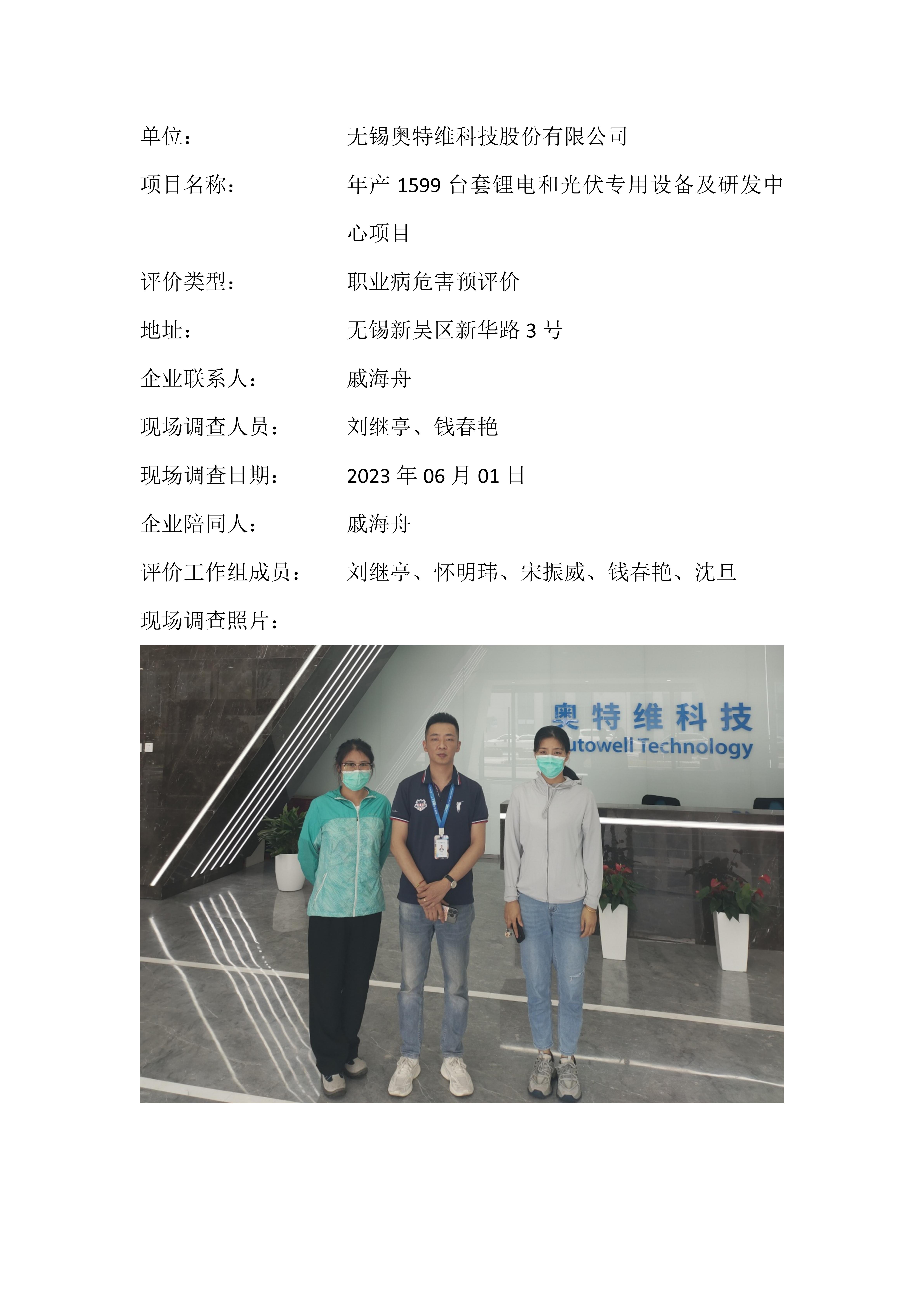 【职业病危害预评价报告】无锡奥特维科技股份有限公司 - 年产1599台套锂电和光伏专用设备及研发中心项目