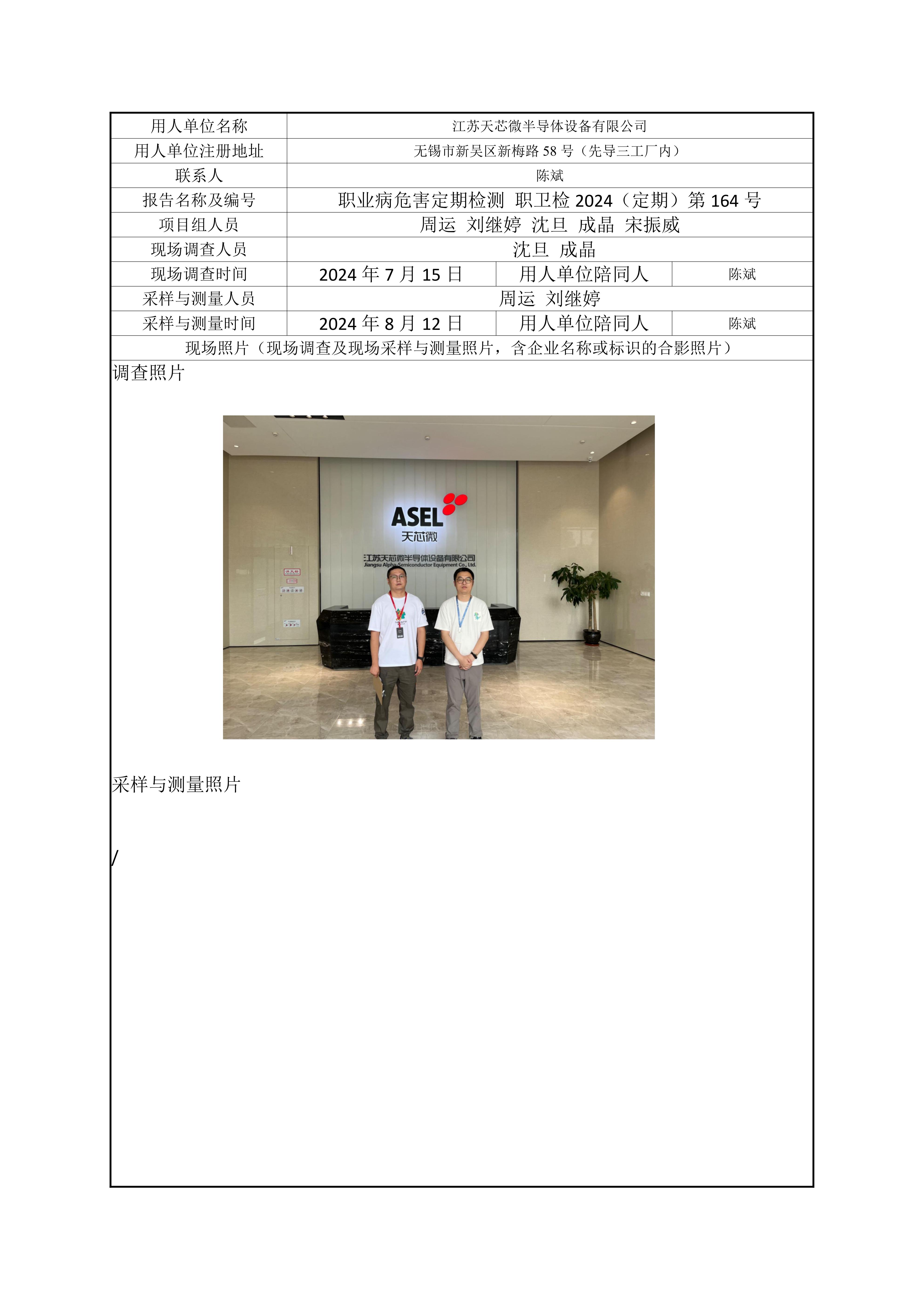 【职业卫生报告】江苏天芯微半导体设备有限公司