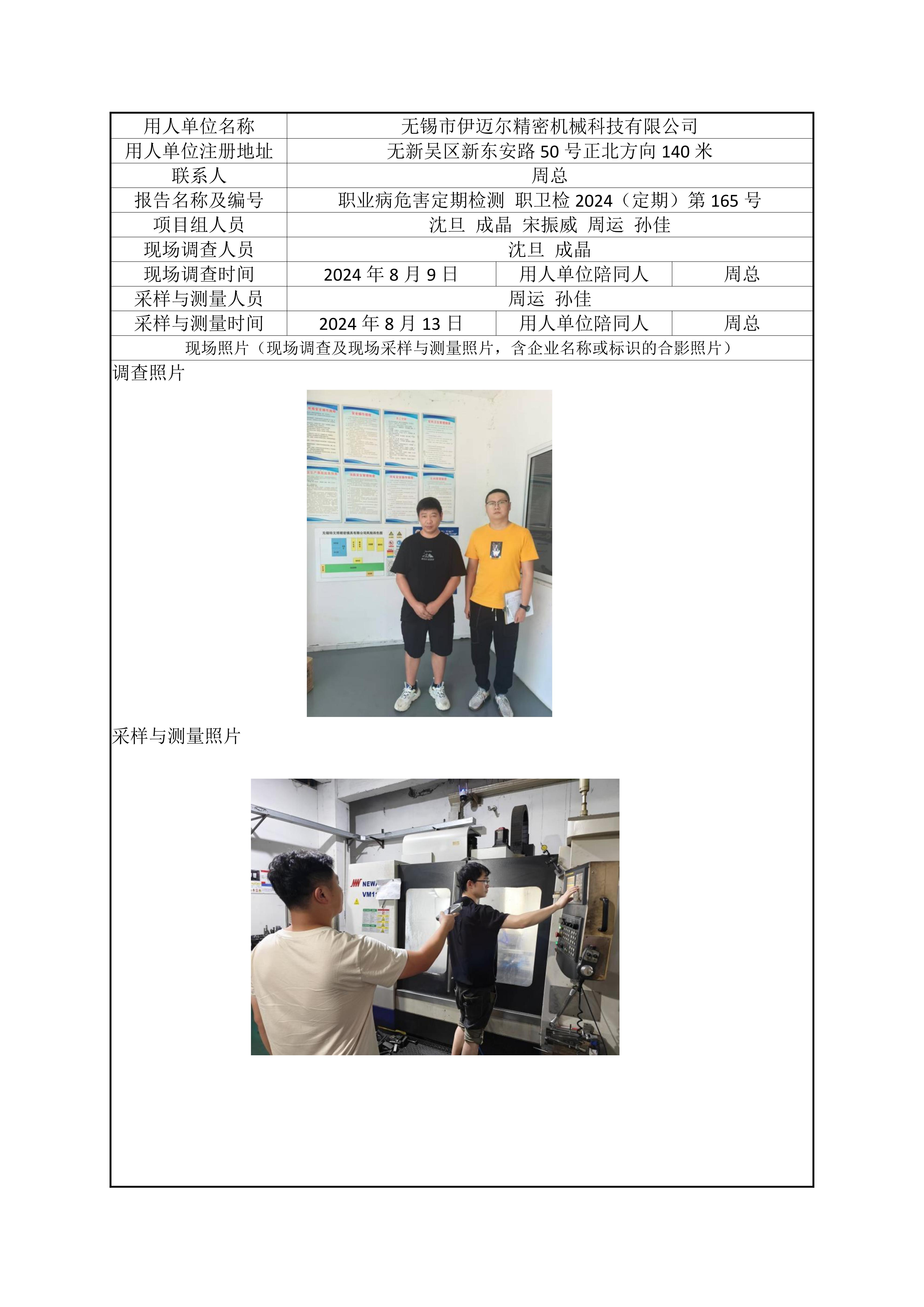 【职业卫生报告】无锡市伊迈尔精密机械科技有限公司