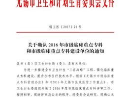 无锡市市级临床重点专科建设单位——儿呼吸科