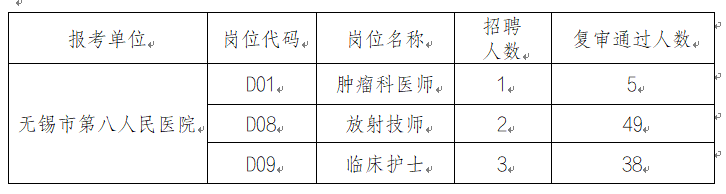 3、下列岗位通过资格审核人数是招聘人数的5倍及以上的,采用笔试+面试的方式