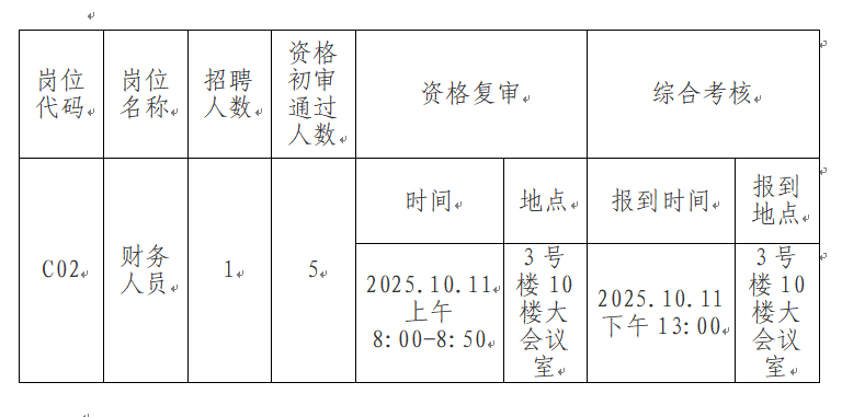 一、考核时间:2025年10月11日(周六),现场资格复审时间为2025年10月11日上午8:00-9:00,具体安排详见“开考岗位及安排”。